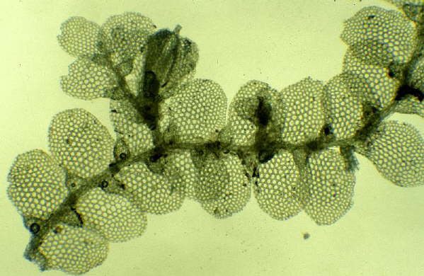 Lejeunea carolensis SpruceHabit with perianth, ventral view.Venezuela, San Carlos del Rio Negro, Spruce L 486, syntype (MANCH CC 18530)