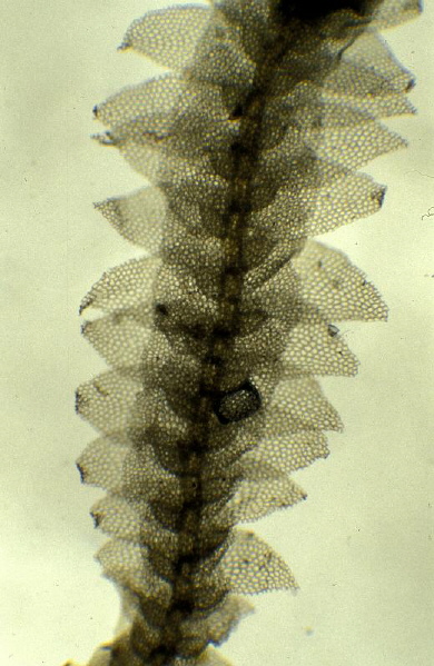 Lejeunea prionoides SpruceHabit, ventral view.Ecuador, Spruce L 79, holotype (MANCH CC 21083)