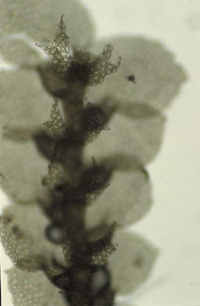 Lejeunea boryana Mont.Habit, detail of underleaves.Lesser Antilles: Dominica, Bory s.n., holotype (PC)