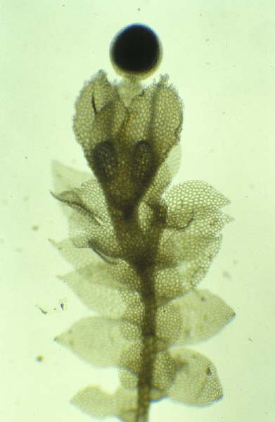 Lejeunea ramulosa SpruceHabit, perianth with mature sporophyte, shortly before dehiscence.Ecuador, Morona-Santiago, U.Drehwald (GOET)