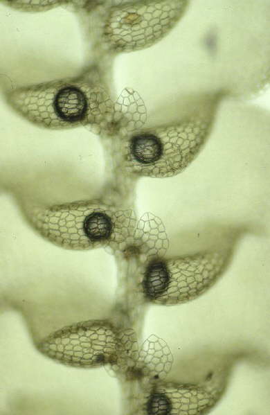 Lejeunea corynantha SpruceHabit, detail of underleaves.Dominica, Schäfer-Verwimp 18052 (herb. Schäfer-Verwimp, GOET)